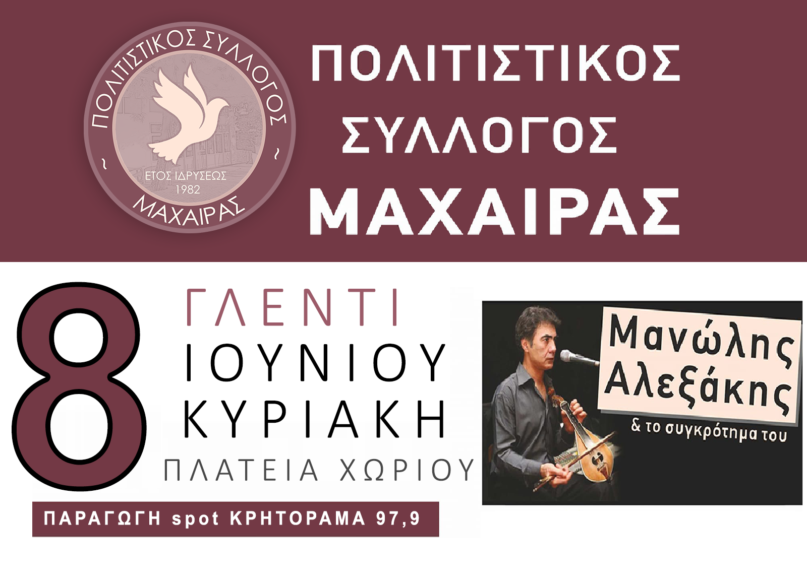 Διαβάστε περισσότεραΜεγάλο Κρητικό Γλέντι στη Μαχαίρα με Μανώλη Αλεξάκη – Κυριακή 8 Ιουνίου 2025