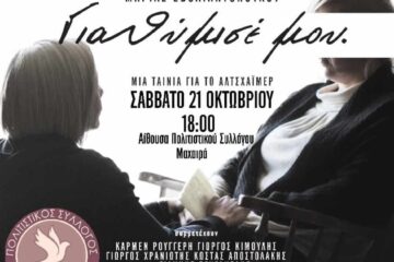 Διάλεξη για την νόσο του Αλτσχαϊμερ Τό ΔΣ του συλλόγου μας σας προσκαλεί το Σάββατο 21 Οκτωβρίου στις 6 μ.μ στην αίθουσα Εκδηλώσεων του πολιτιστικού συλλόγου Μαχαιράς για νά παρακολουθήσουμε την ομιλία με θέμα το. ΑΛΤΣΧΆΙΜΕΡΑπό την ψυχολόγο ΣΒΟΛΙΑΝΤΟΠΟΥΛΟΥ ΜΑΡΙΑΜε τους συνεργάτες της.Θά ακολουθεισει προβολή της Βραβευμένης ταινία σχετικά με Διαβάστε περισσότερα